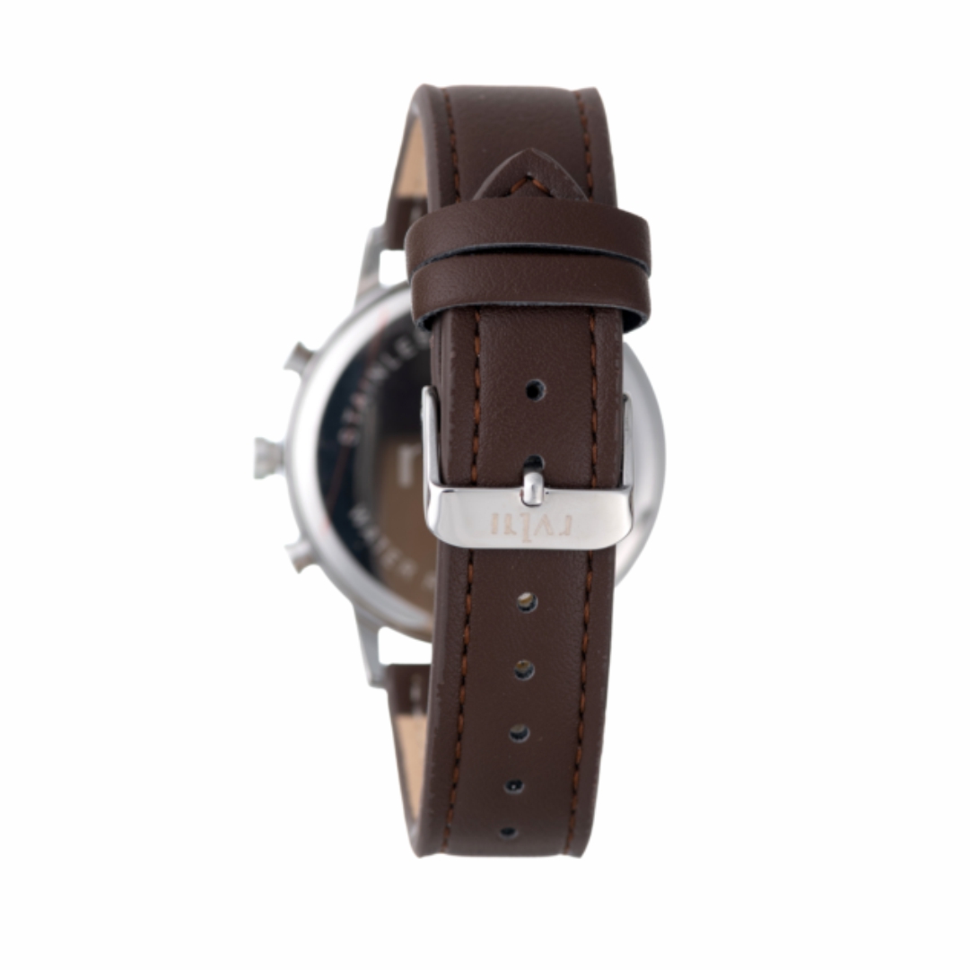 Crafted for the folk who value understated finesse, this watch offers a stainless steel case paired with a rich brown leather-like strap. The deep blue dial with precision subdials exudes a heritage feel, making it an enduring statement of style.