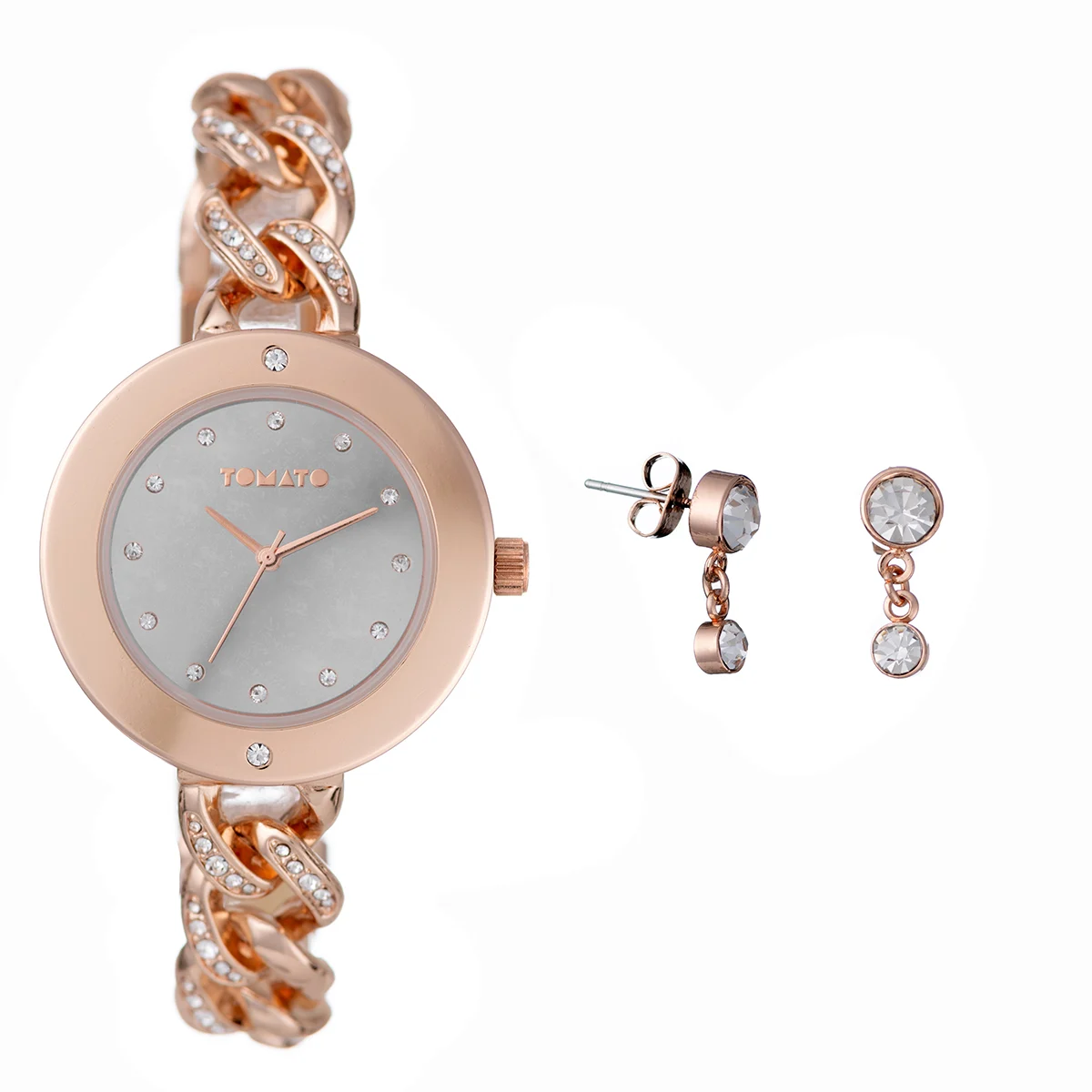 Tomato – 36mm Watch With Black Stone Dial & Chainstone Bracelet